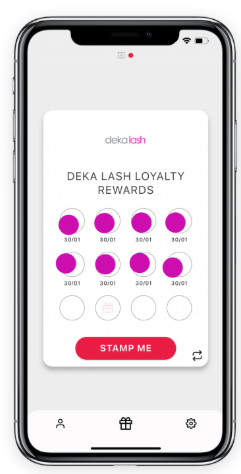 Deka Lash is a multi-state US lash bar franchise. As documented by the brand’s digital loyalty platform partner, the program runs two separate stamp cards in parallel for each member, with each card serving a different commercial objective.