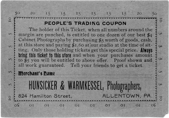 [21] Hunsicker & Warmkessel, 1890, People’s Trading Coupon, Allentown, PA.